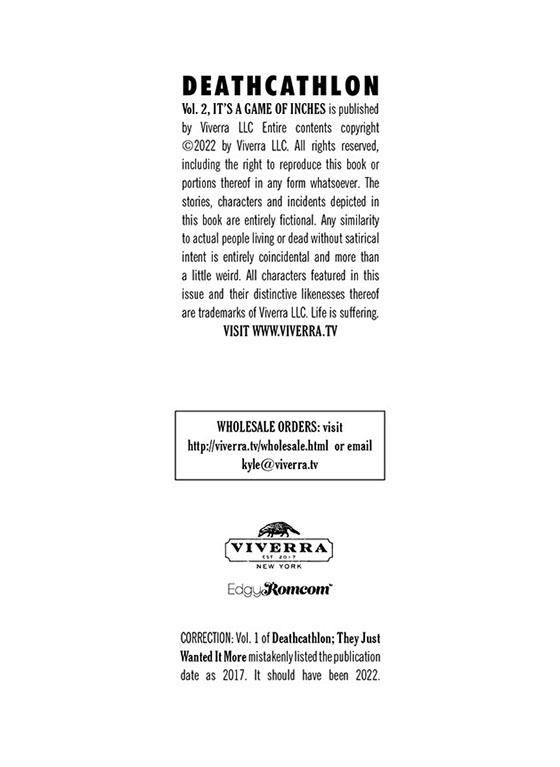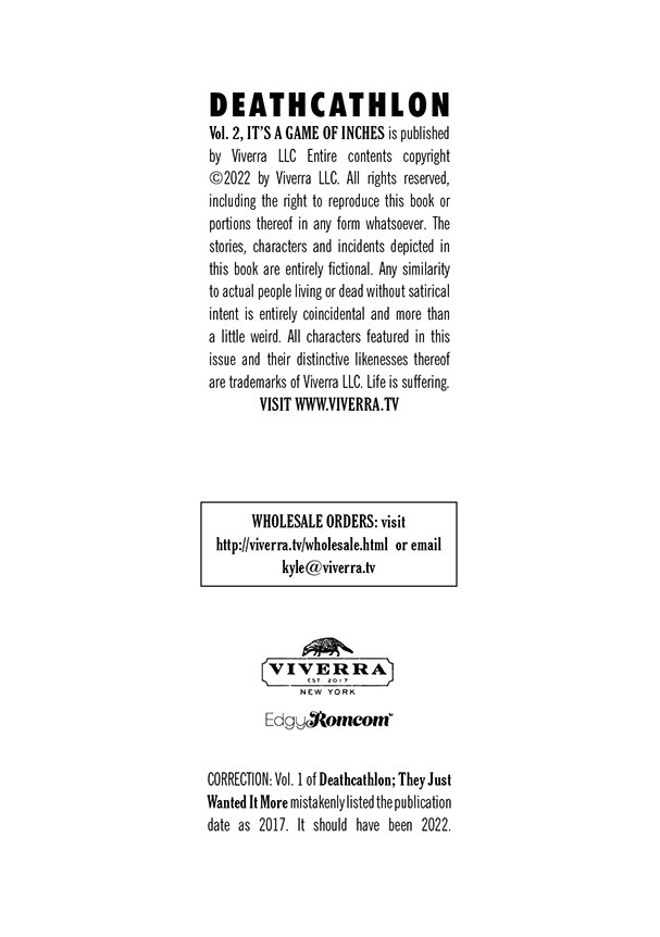 The wall-to-wall pulse-quickening goosebump-inducing toe-curling thrill ride continues in Deathcathlon Vol.2: It's A Game Of Inches