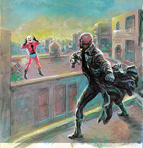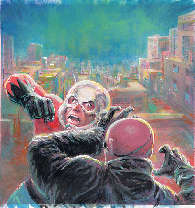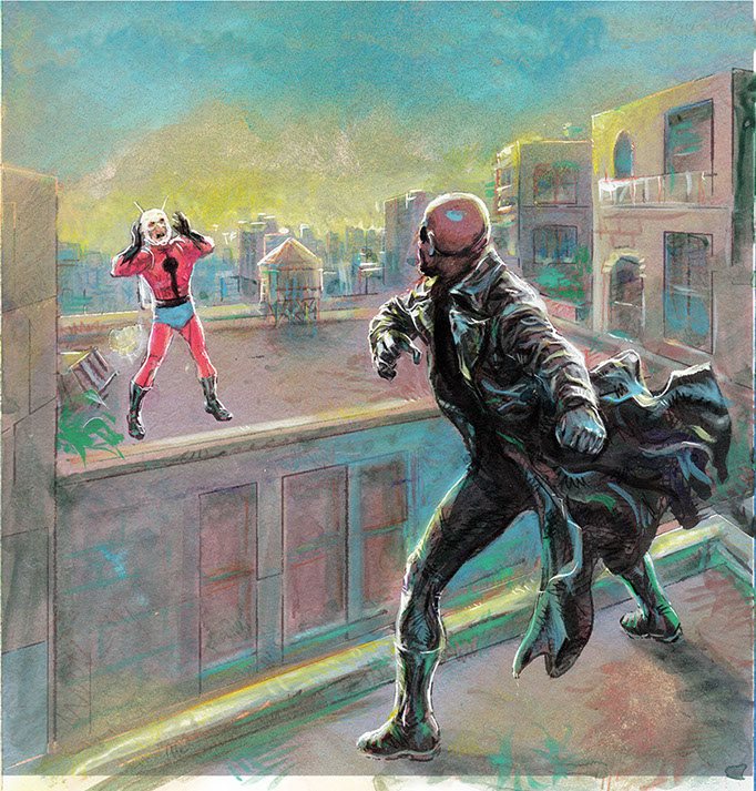 Rendered in guoache, inks, pastels & colored pencils. Sealed with fixative.