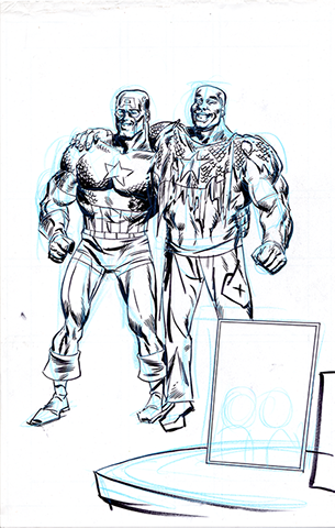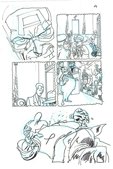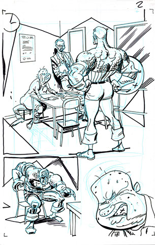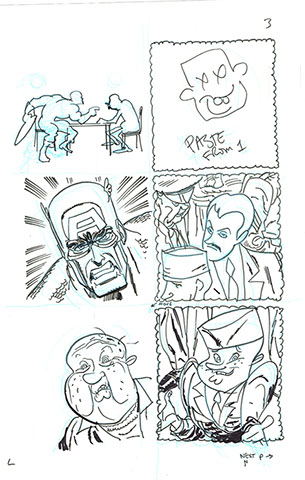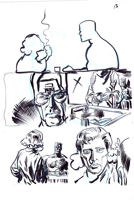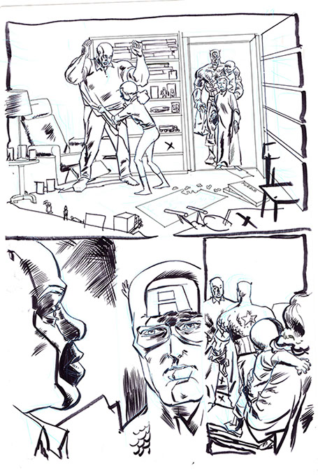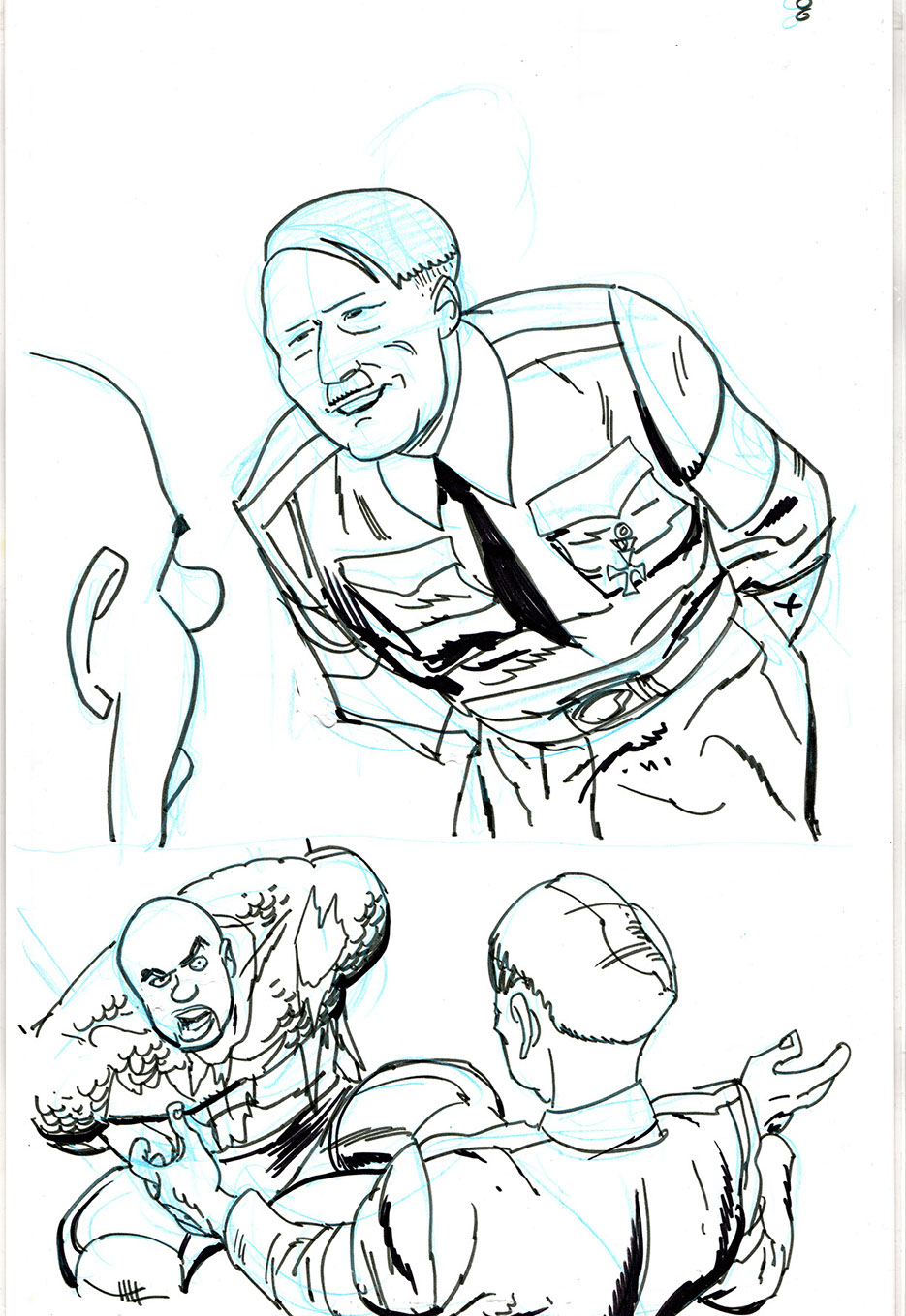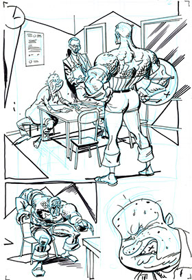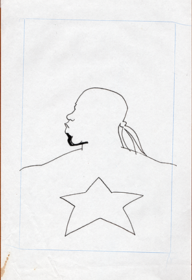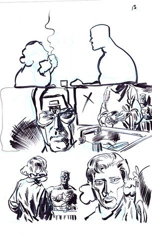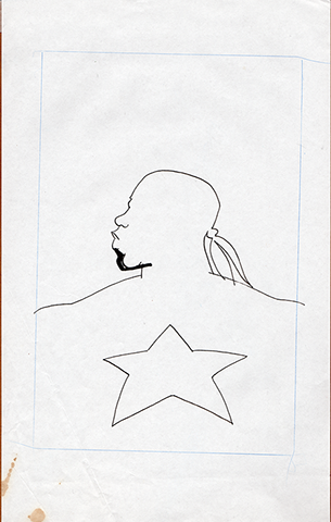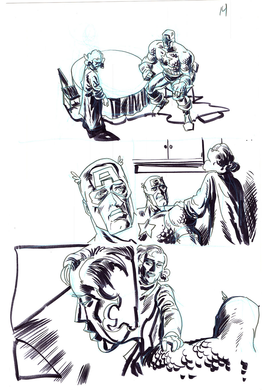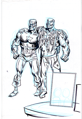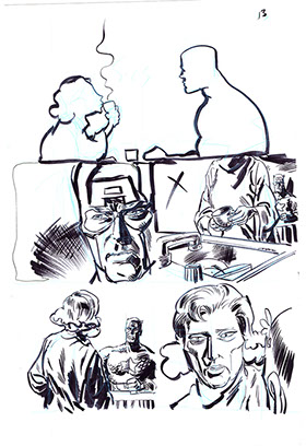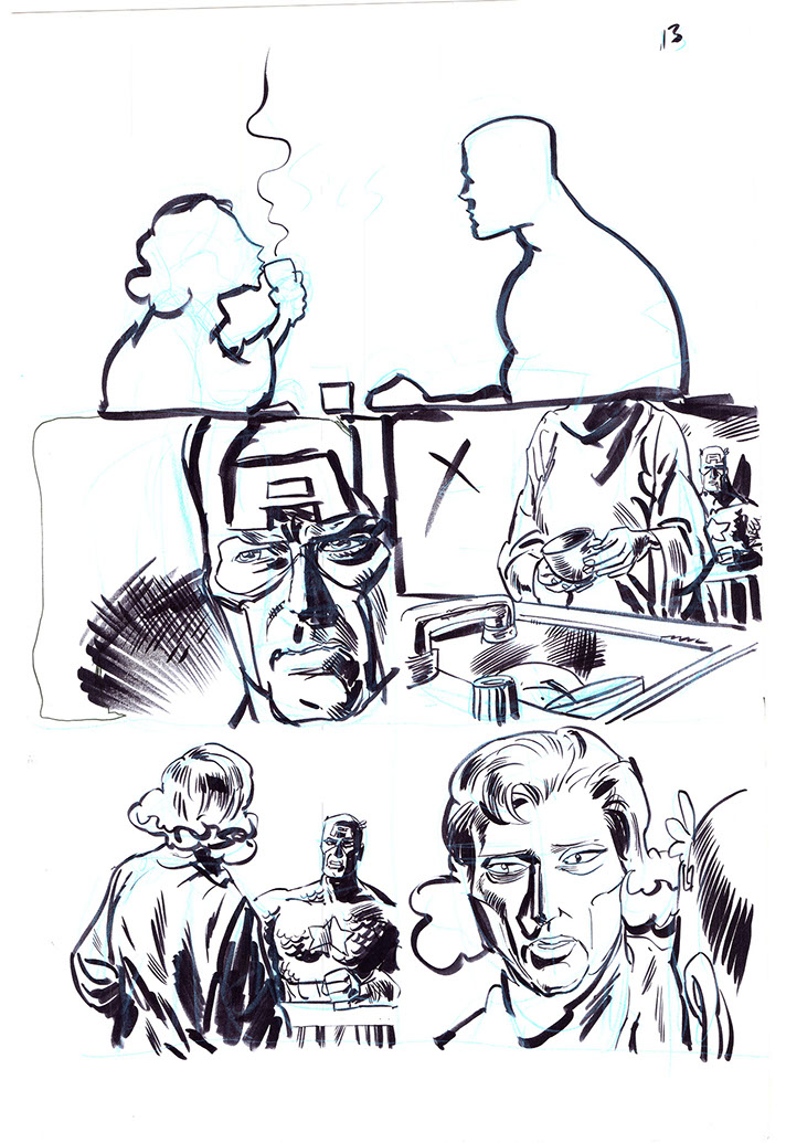 The now-iconic silhouette which adorned the first issue of Captain America's TRUTH series was drawn in about 15 minutes on a sheet of legal-sized xerox paper with no initial pencilling other than the frame which was traced by laying a comic on the paper. Once the line art was scanned, it was filled in in Photoshop.