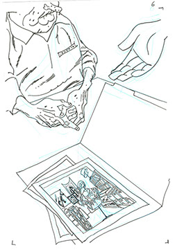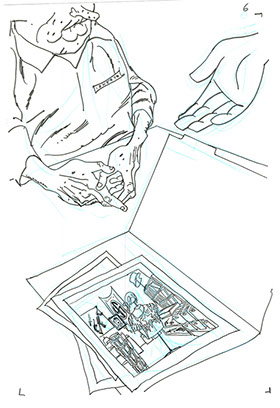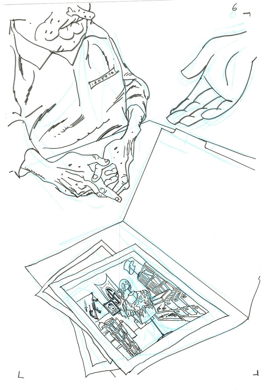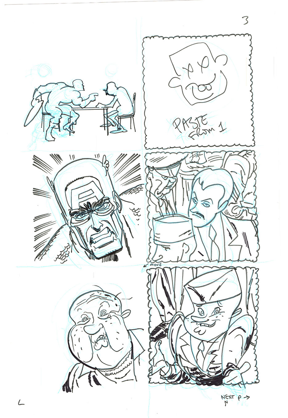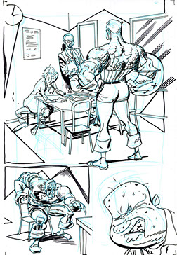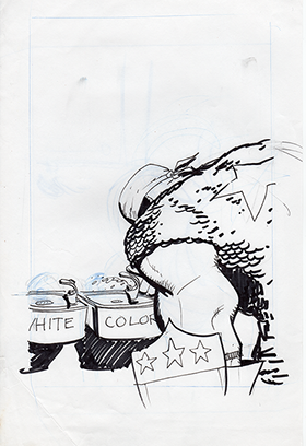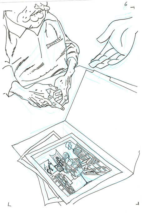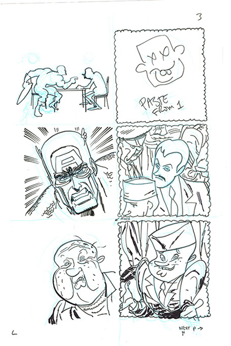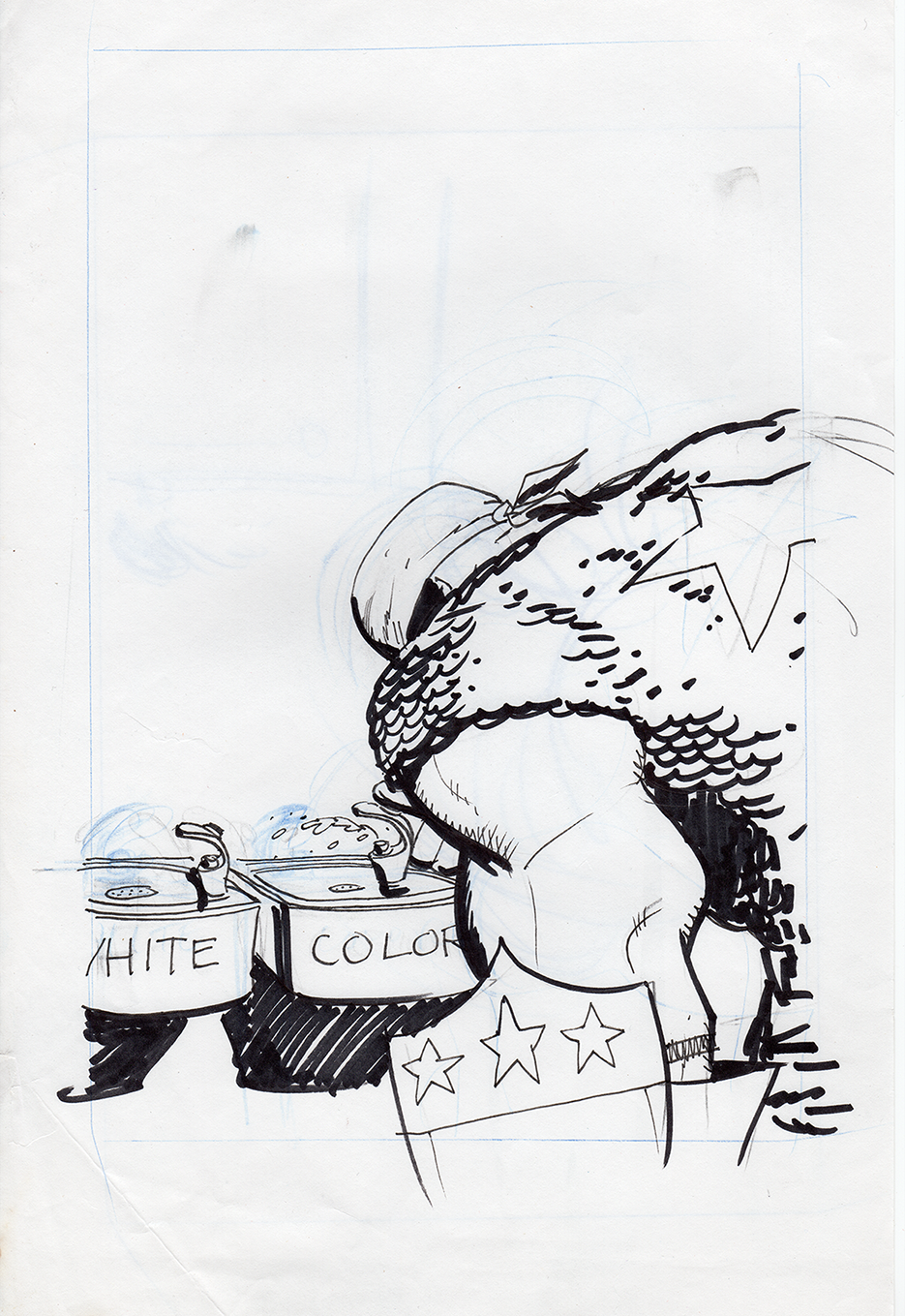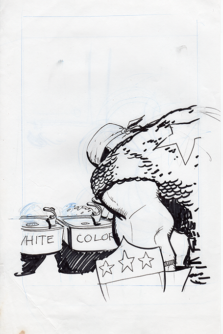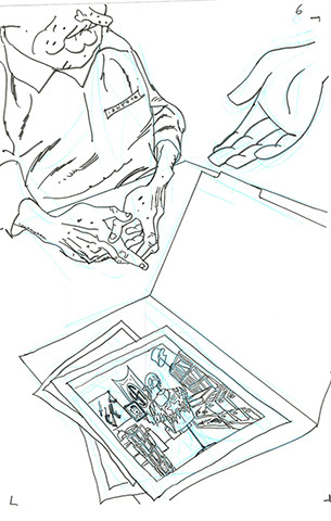 The now-iconic silhouette which adorned the first issue of Captain America's TRUTH series was drawn in about 15 minutes on a sheet of legal-sized xerox paper with no initial pencilling other than the frame which was traced by laying a comic on the paper. Once the line art was scanned, it was filled in in Photoshop.